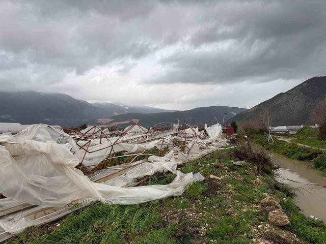 Finike ilçesinde akşam saat 20.00 sıralarında etkili olan fırtına ve sağanak yağışın ardından Saklısu Mahallesi’nde denizde oluşan hortum domates, biber ve kabak yetiştirilen seraları adeta yerle bir etti. Enerji nakil hatlarının da kopmasına sebep olan hortum sebebiyle bölge karanlığa gömüldü. Seralarla birlikte sahile yakın bölgedeki 5 katlı bir binanın balkon korkuluk camlarının kırılmasına neden olan hortumun verdiği hasar ise gün ağarınca ortaya çıktı. Demir seraları parçalayan ve 42 çiftçiye ait yaklaşık 120 dönümlük örtüaltı öretiim alanını adeta yerle bir eden hortum ürünleri de telef etti. Hortum Finike-Elmalı kara yolu üzerindeki iş yerinin güvenlik kamerasınca da görüntülendi. Görüntülerde, park halindeki traktör römorkunun hareket edip yerinden oynadığı ve ortalığın adeta toz duman olduğu anlar yer aldı.