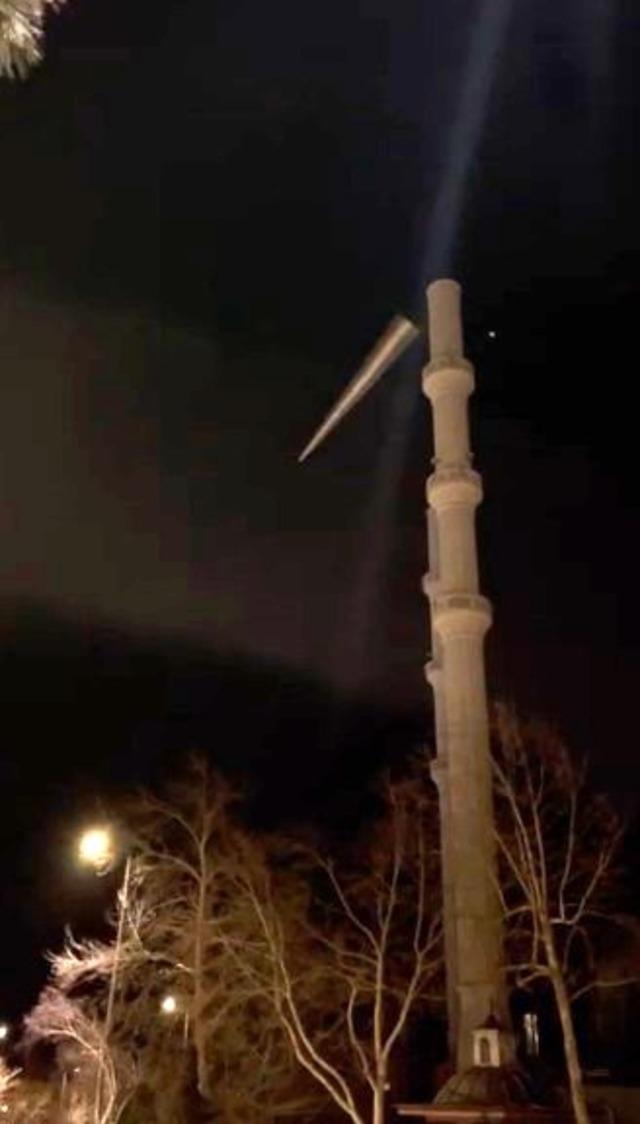 Isparta’da etkili olan şiddetli fırtına hayatı olumsuz etkiledi. Edinilen bilgilere göre, gece saatlerinde etkisini artıran rüzgâr nedeniyle Ayazmana Halıkent Mahallesi’nde bulunan bir caminin minaresinin külah kısmı büyük bir gürültüyle savrularak çevreye düştü. İhbar üzerine bölgeye çok sayıda itfaiye ve emniyet ekibi sevk edildi. Ekipler çevrede geniş güvenlik önlemi alarak yolu araç ve yaya trafiğine kapattı. Şans eseri olayda can kaybı ya da yaralanma yaşanmadı. Ancak külahın düşmesi çevrede kısa süreli paniğe neden oldu. Muhtemel risklere karşı bina çevresinde güvenlik çemberi oluşturulurken hasar tespit çalışmalarına başlandı. O anlar ise çevrede bulunan bir vatandaşın cep telefonu kamerasına saniye saniye yansıdı.