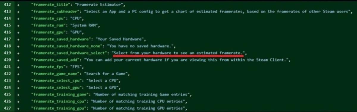 Tweak Town’da yer alan habere göre, Steam İstemcisi kodlarında daha önce orada olmayan yeni bir satır tespit edildi. Buna göre, bu satırda “Diğer kullanıcıların kare hızlarına dayalı olarak tahmini kare hızlarının bir tablosunu almak için bir Uygulama ve bir PC yapılandırması seçin.” ifadesi yer alıyordu.